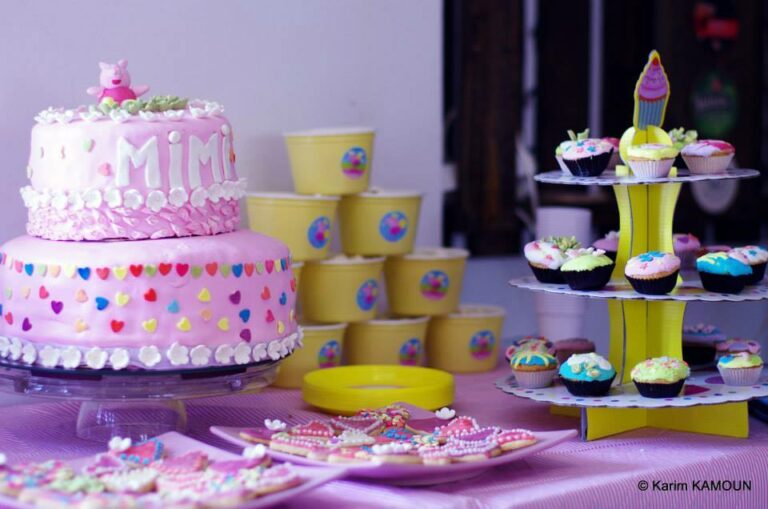 Sarra a préparé les cupcakes la veille de l’anniversaire avec sa fille, et a prévu de la décoration alimentaire (vendue chez les grossistes à l’Ariana ou chez DecoGato).