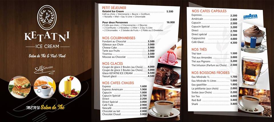 • Adresse: Ketani ice cream , Boumham Ezzahra (côté Volvo, à coté de Maazim au 1er etage).