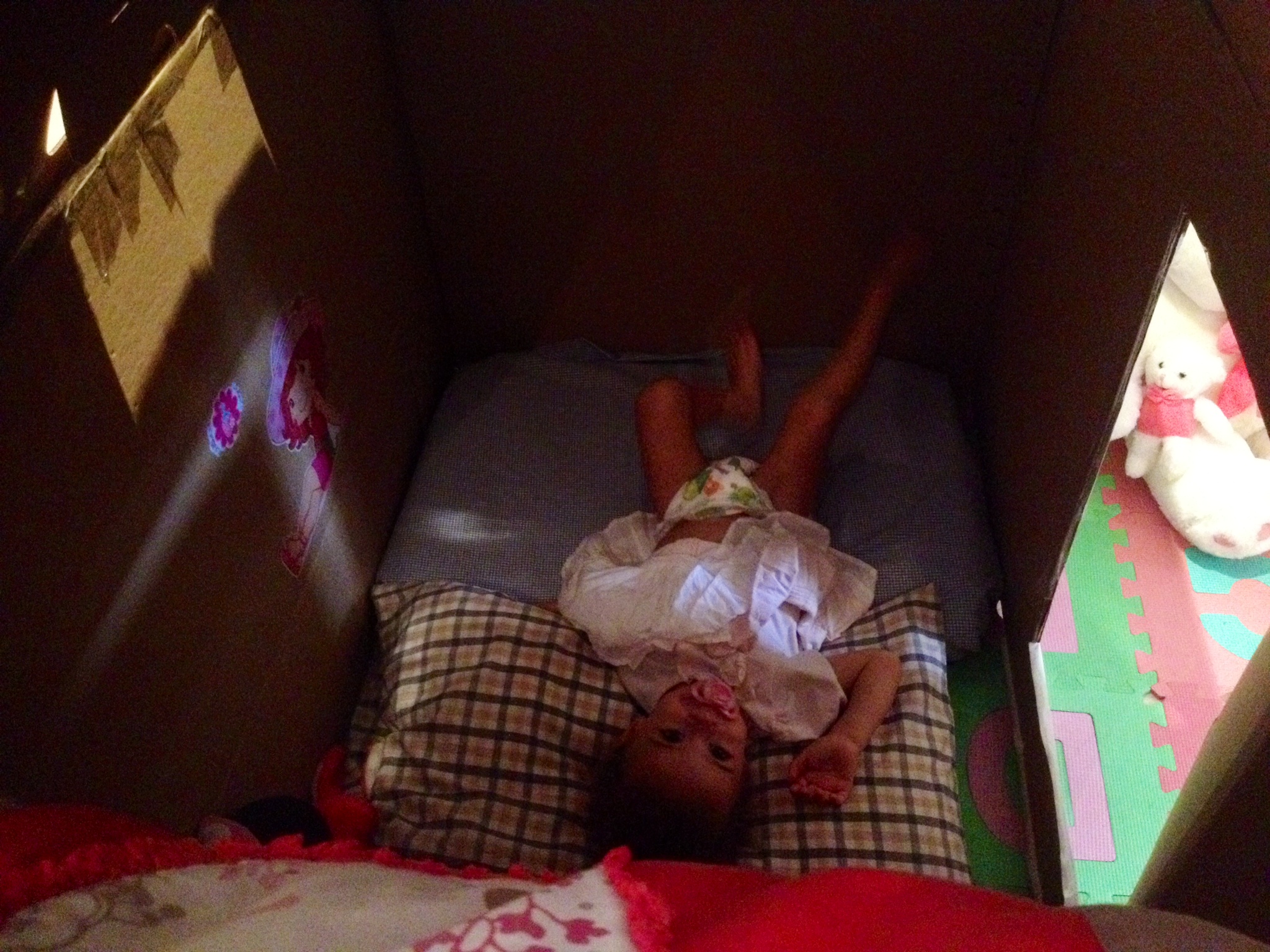 La petite a adoré sa cabane et adore s’y allonger ou jouer avec ses amis les peluches.