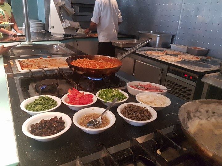 Il y a des crêpes pour le goûter et le soir il y a soit le buffet soit le restaurant tunisien… On a opté pour le buffet.