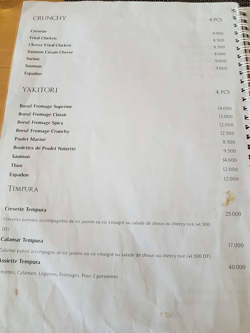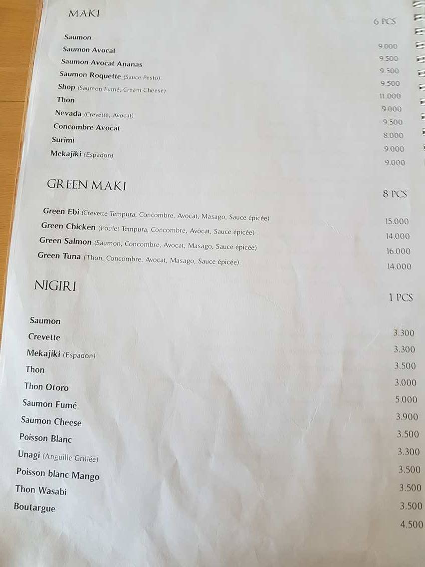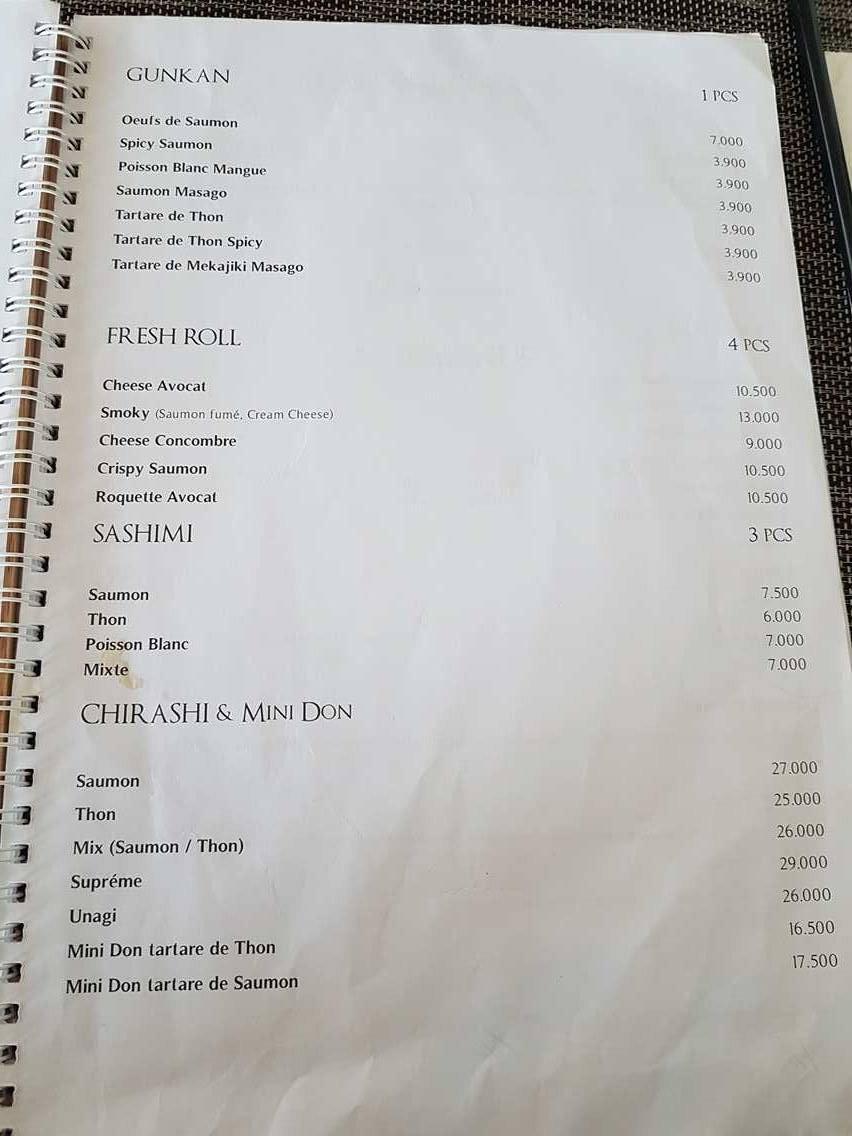 Courageusement, on a donc testé pour vous la carte de Sushiwan Gammarth qui vient tout juste d’ouvrir ses portes sur la route du Relais. Il y a deux formules, la classique, à la carte, vous commandez ce que vous voulez et la formule buffet à volonté où pour 45 dinars vous pouvez manger jusqu’à vous évanouir si vous voulez. Seule contrainte, que nous on a trouvé très intelligente pour éviter le gaspillage, pour chaque pièce non mangée, il vous sera facturé 2 dinars de plus.